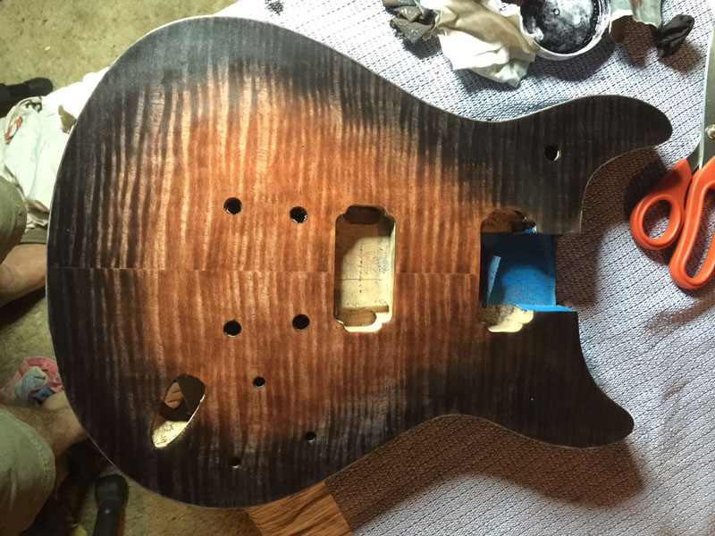 I've got 2 guitar builds on hold and waiting for the DingoTone MkII to arrive is killing me, so I thought I'd see if I could get some more depth to the black if I just persevered with the Translucent Stump MkI.