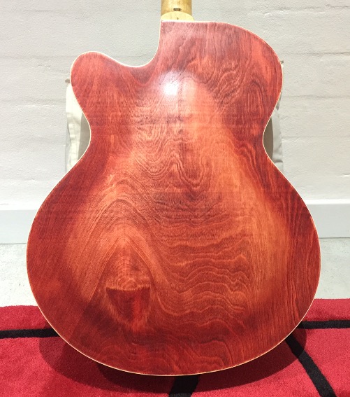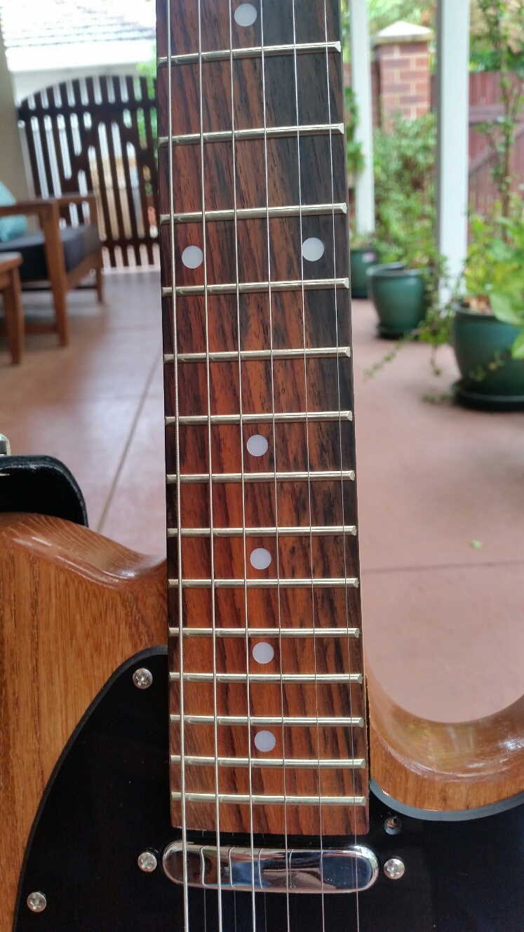 NECK - Started with the colourless Dingotone neck finish but topcoats were very patchy, so sanded back until even and applied an acrylic finish - result has lovely smooth satin feel.