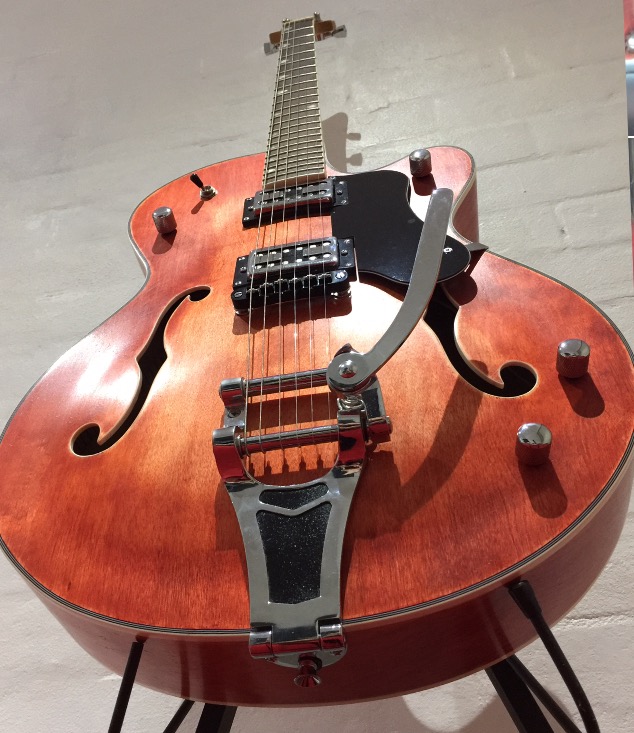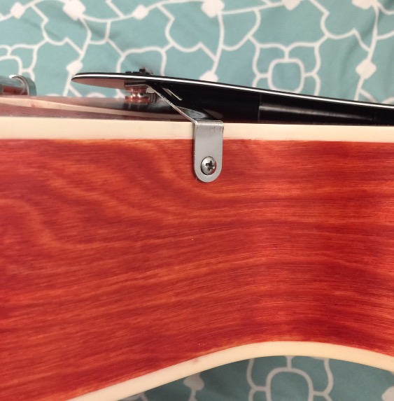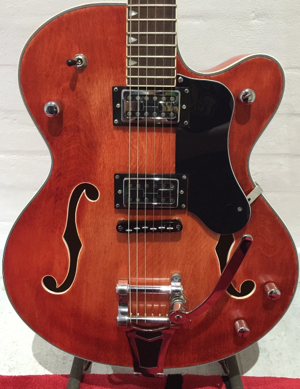 I customised the pick guard bracket to give the pick guard that Gretsch Falcon style lift. I also fashioned my own nut out of a piece of kangaroo bone my brothers dog failed to bury! The writing on the headstock is "Guitar" in Japanese.