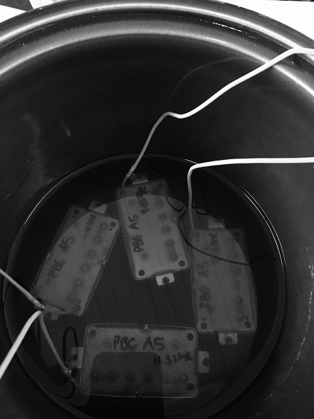 I then wax potted my new PBG Alnico 5 Humbuckers with 80% parafin and 20% beeswax in a crock pot from the 70's!!!!