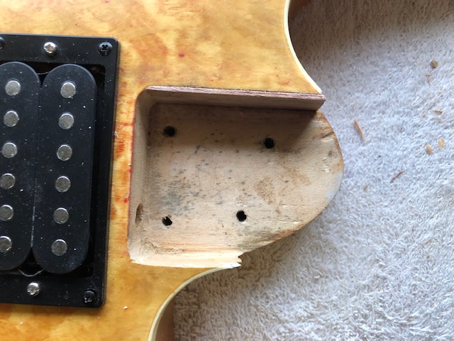 Strings are running parallel to the edge of the fret board. It also fixed the string height issue it had on the treble side & made the whole thing much nicer to play