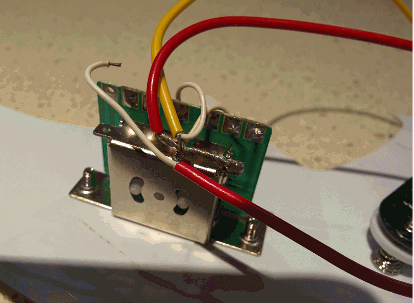Here are some pics of the wiring. I'm thinking the white wire from the humbucker came off during shipping. It looks like it should be re-soldered in the first connector spot.