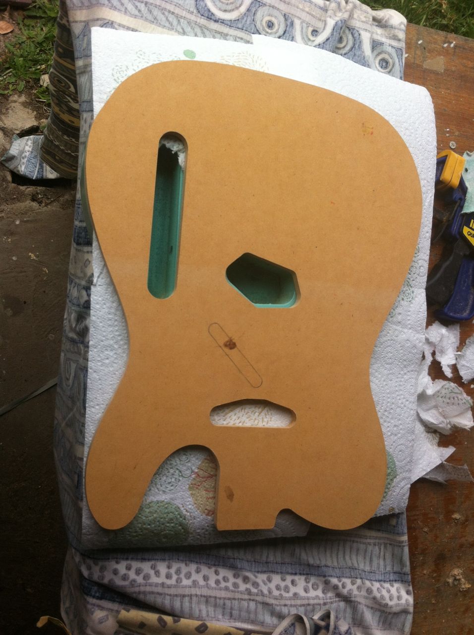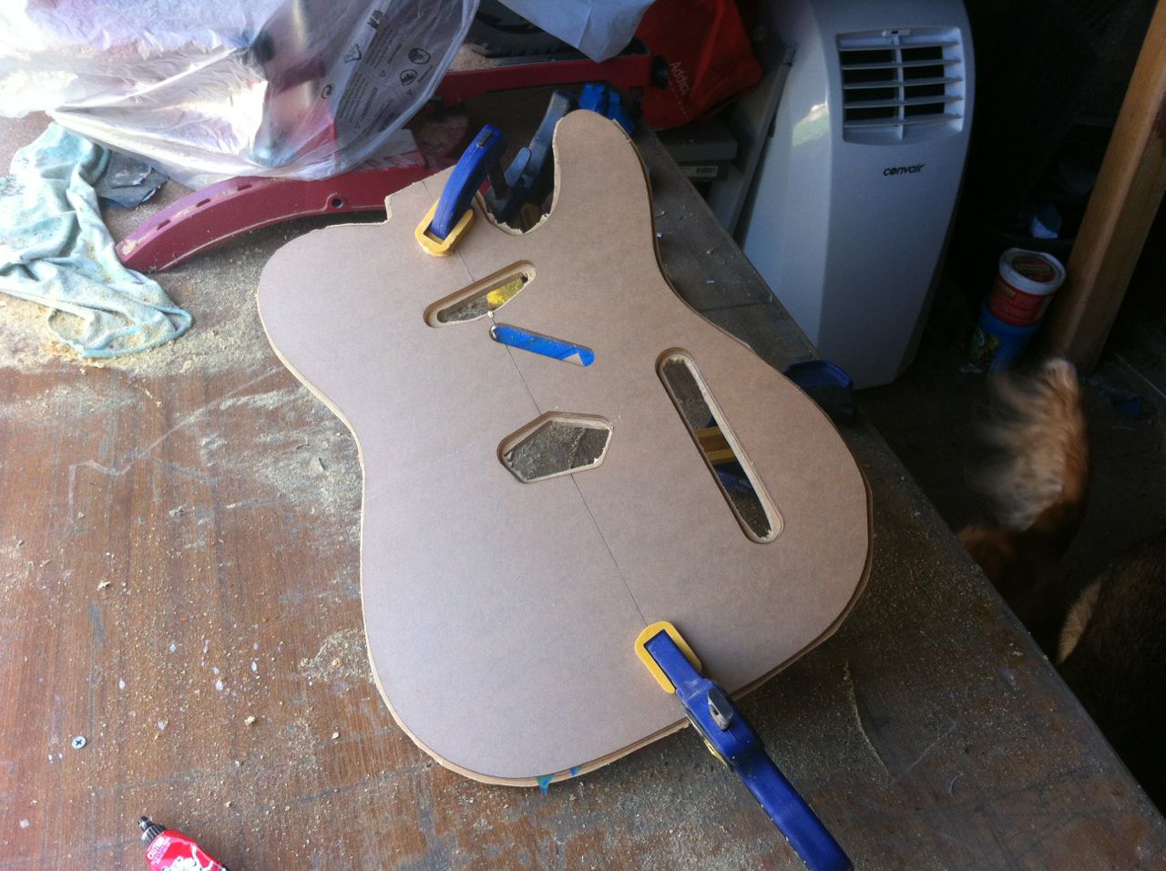 Bit of an update. Have made a wooden copy of the plastic template pablo sent me recently. I didn't have any double sided tape so i used a trick I saw on Crimson guitars where Ben puts masking tape down then uses super glue to smear on the two opposing pieces. This worked really well and I was able to easily remove the templates from each other without any glue getting on them.