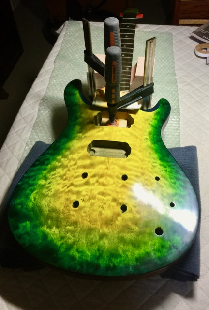 thats starting to get a lovely gloss axemurderer. Great work. I agree with 2 out of the 3 things drinking beer and rubbing the guitar but MacDonalds for dinner ?