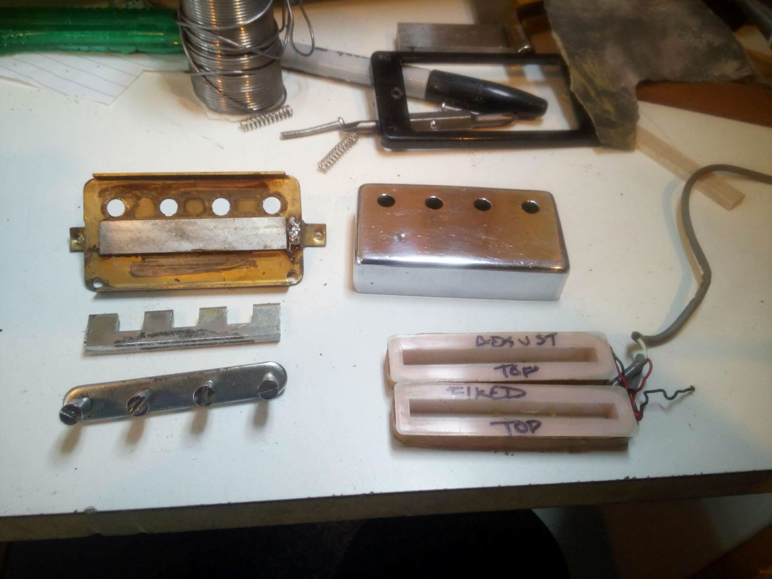 Setback today was finding a problem with my antique secondhand humbucker as I checked out the electrics. Looks as if its managed to get a damaged winding. Irritation beat my normal enthusiasm for reuse and repurposing and I ordered up a pair of Artec pickups...
