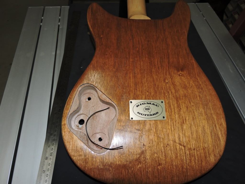 Drilled the holes to fit the tailpiece,after procrastinating on it for a week or two and starting to fit pickups and wire.