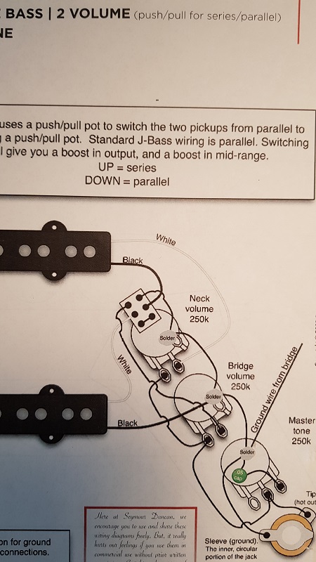 The other wires connected as per the diagram.....i.e...JB pickup connected to its volume and tone....then the push pull and tone through to the jack socket.