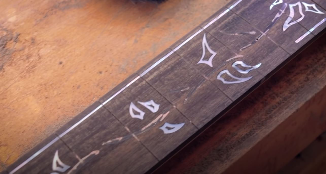 He did a really intricate vine style inlay up the fretboard, but you can barely make out the stem because he chose a colour that closely matches the fretboard wood.