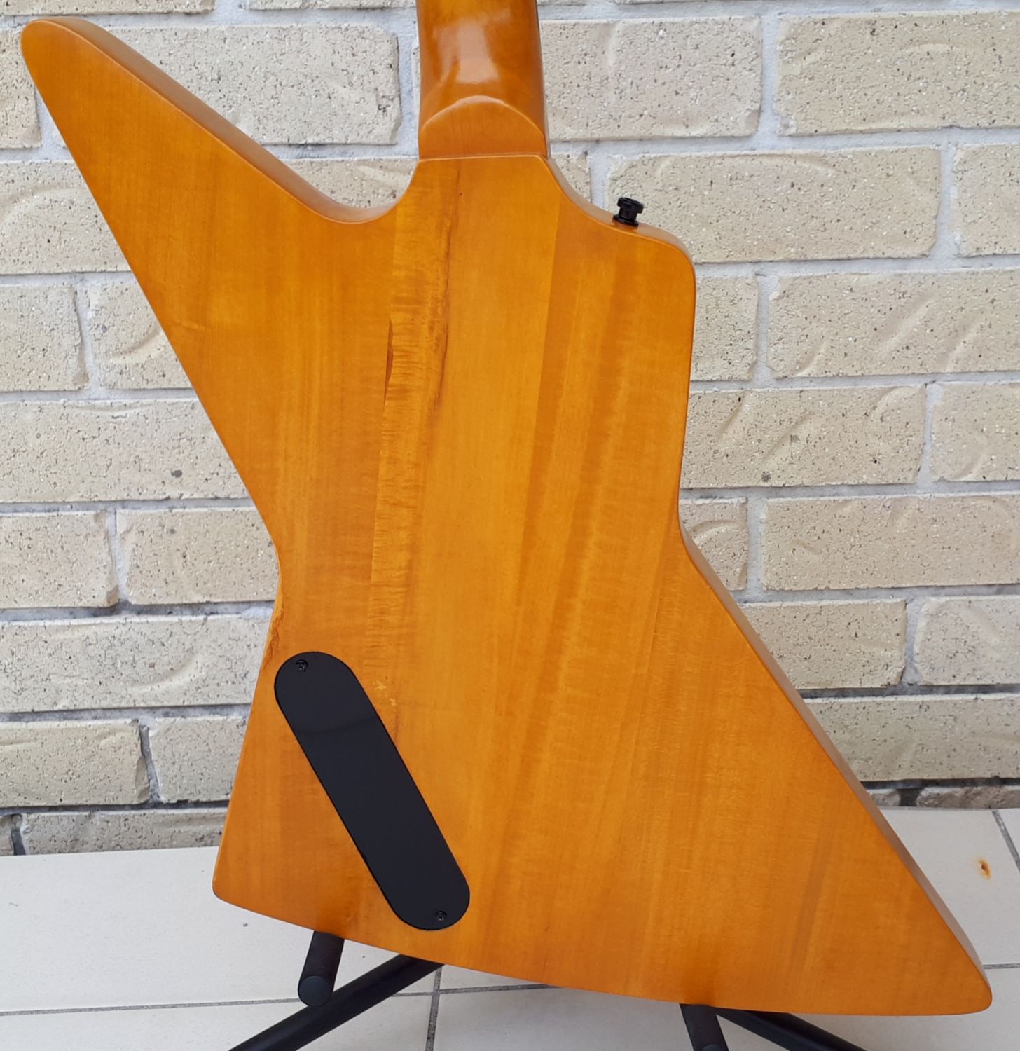 This Guitar has gone a more Caramel colour over time which I quite like as it now looks closer to a traditional Korina finish. (Look closely around neck heel joint to see a truer aspect of the colour) What I did not expect shall be revealed in next few photos.....
