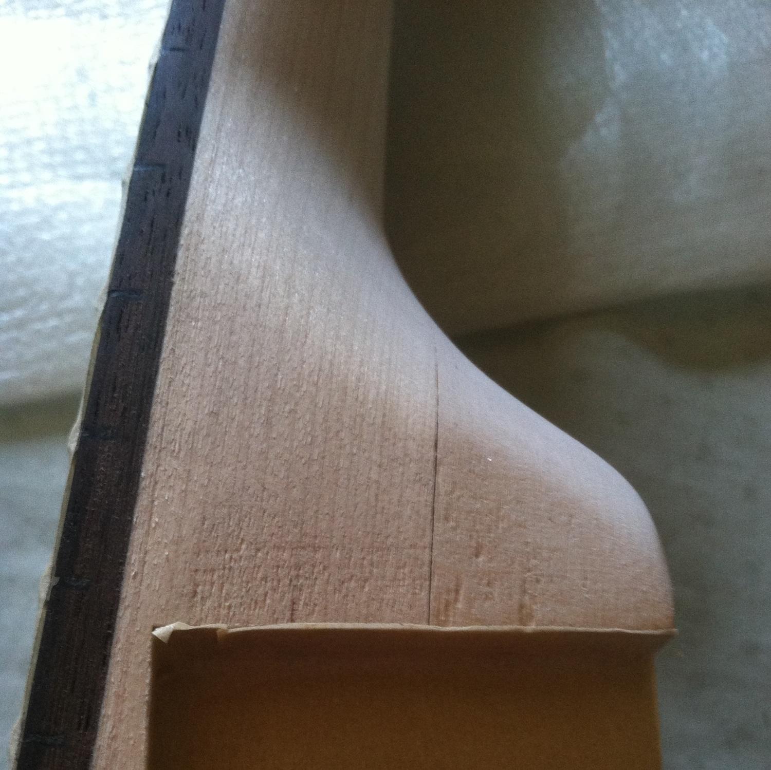 Hey guys, I am building an ES-1S kit and came across this on the heel of the neck. It looks like a hairline gap where they glued 2 pieces together. Is this anything I should be concerned about/fix? Or should I just proceed on with the Tru Oil and finishing? Thanks for the help!