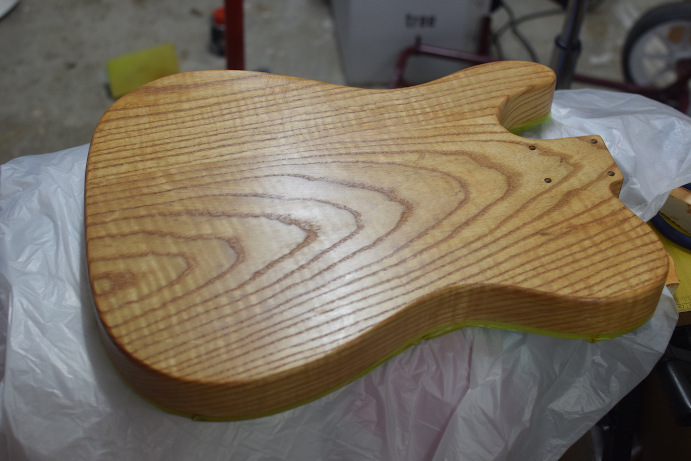 This long weekend has allowed me to be super productive. Really happy with how the finish turned out! For whatever reason, the top only required two coats, while the back took 5 to get to where I wanted it to be! Still working through the neck finish, which takes a lot longer to dry.