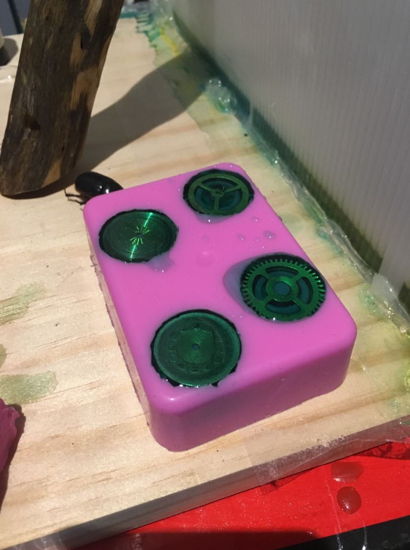 Next step: Filling molds with resin! I decided to go with the emerald green and it appears this bass is going down the old steampunk path .... I have loads of old clock parts and have a love for this genre