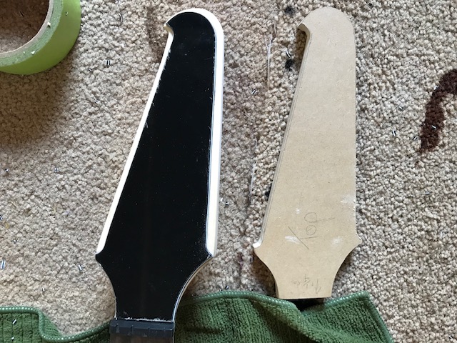 I have finally started on my TB-4 which was a Christmas present. My plan for this is to create a pigeon pair (or big brother) for my FBM-1. I will use FW stains to create a tobacco like burst. Then coat with tru-oil. Today hopefully I will get to reshape the headstock as drawn.