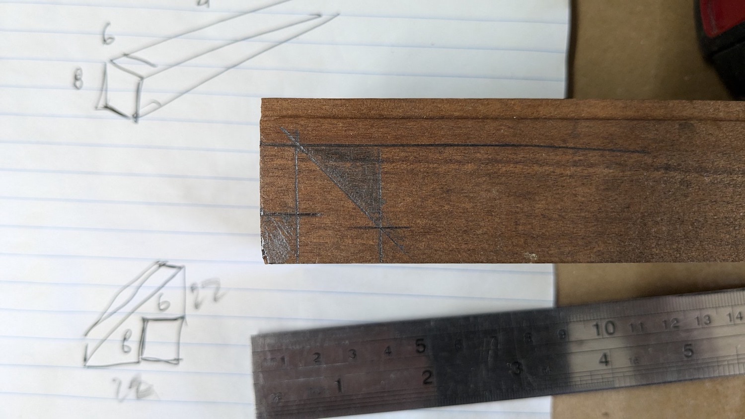 On a random piece of timber I had hanging around I sketched the model.