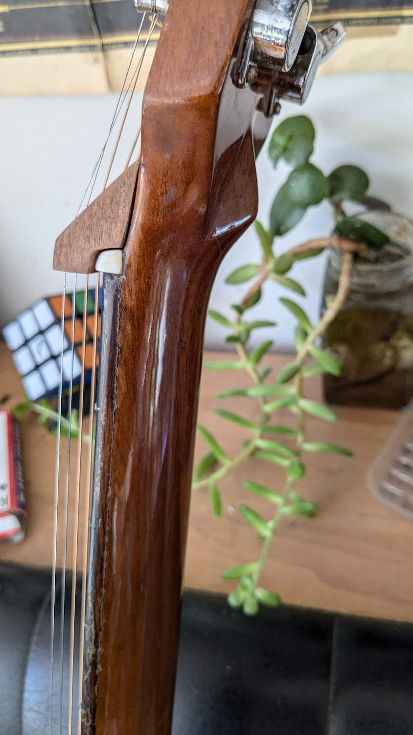 the "downside" is that I had to tune it down to open C (CGCGCD), that was the only string tension that seemed reasonable. In theory the whole idea was to make this mod to have a second lapsteel in a different key, like open D or open E since I already have a DYI made (electric) lapsteel tuned to C