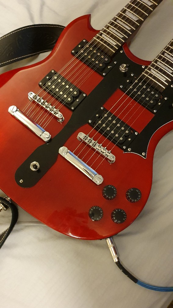 SGD-612 double neck SG finished in wudtone amaranthine. All parts stock