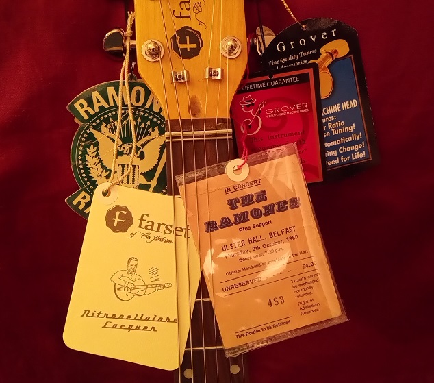 Case candy, including my old Ramones concert ticket from 1980 and an OGWT "Starkicker" pin badge: