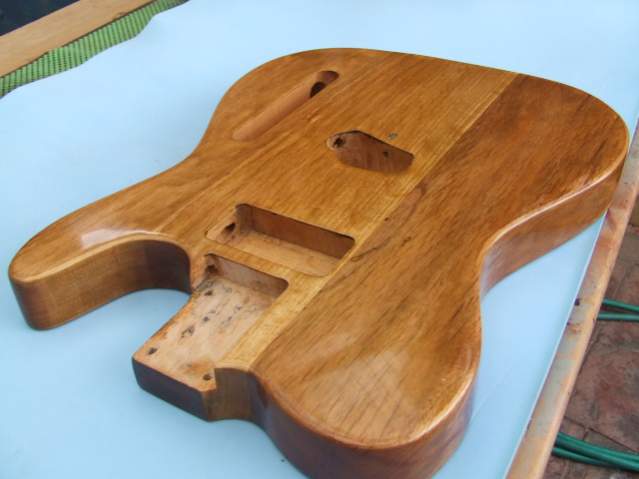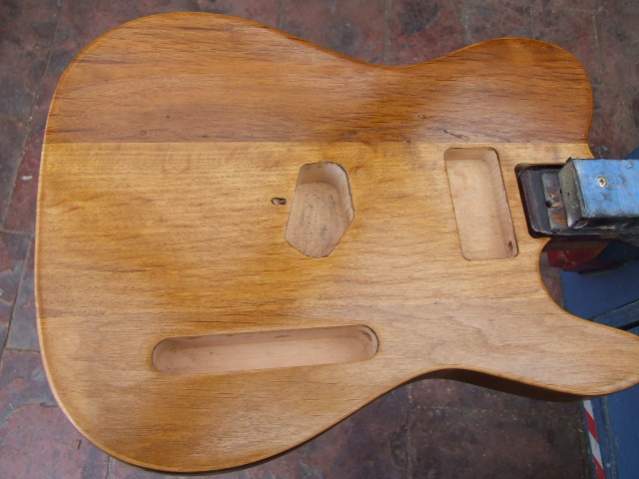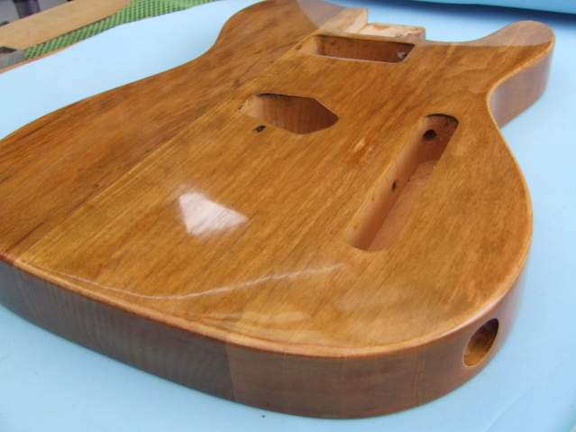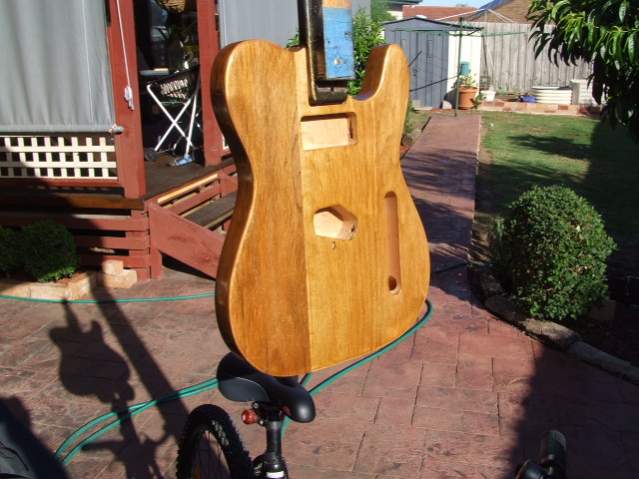 have started on the TL now, have sanded the body etc etc... and have applied 2 coats after using some Old baltic pine stain to even out the difference in-between the 3 pieces of alder to make the body.