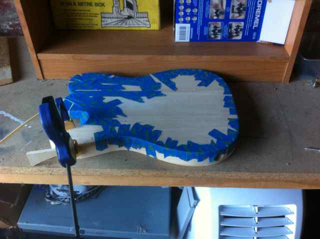 I got this tele kit for christmas last year and was hoping to have something to work on over the holidays. This idea however was abruptly discarded after the router bit i was using to cut the binding channel slipped out a few mil and gouged a big chunk of wood from the bottom of my guitar.