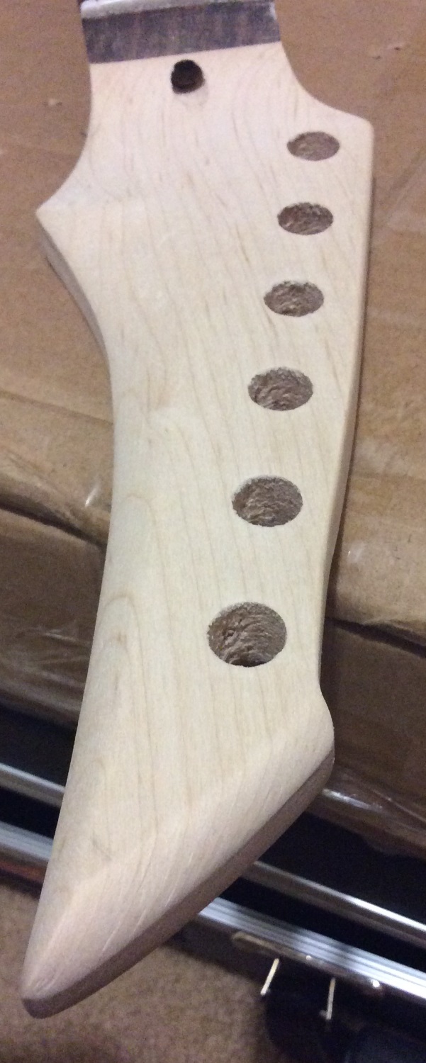 Had a go at adding some contours to the headstock. Still needs a bit of work to clean it up. Must learn more patience and focus.