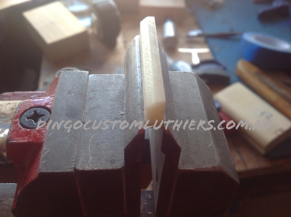6. Begin cutting bevel on back edge before radius sanding the top profile.