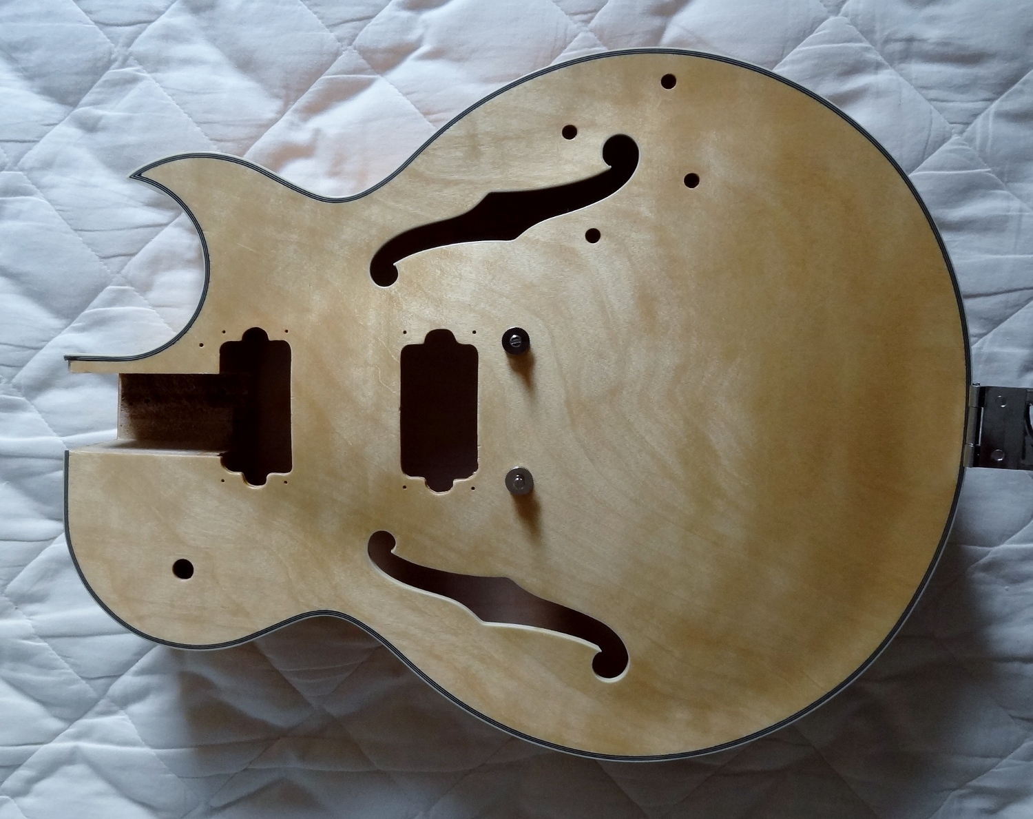 Really had an inkling for semi/hollow body to put on that stand, but these sort of guitars aren’t as plentiful or cheap as Strat/SG/LPjr clones at Cashies. So here we are, building a Gibson ES-175ish ES-3 kit.