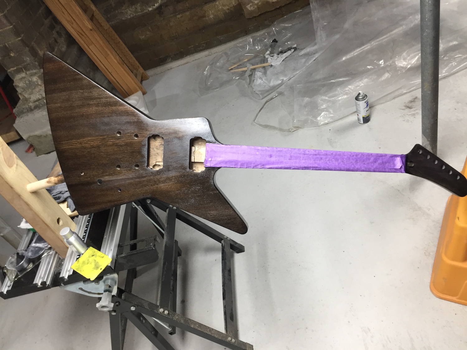 I'm not going to rush this build as it's too cold over here to work outside on it (and will be for a few months now), plus I need to buy the hardware and I'm trying not to spend too much at the moment with Christmas coming up. I also need to decide whether I'm going to rout it out and fit a pickguard to have the pickup selector switch in the traditional Explorer location, and fit three control knobs, or stick with it as it is. It will probably depend on the finish.