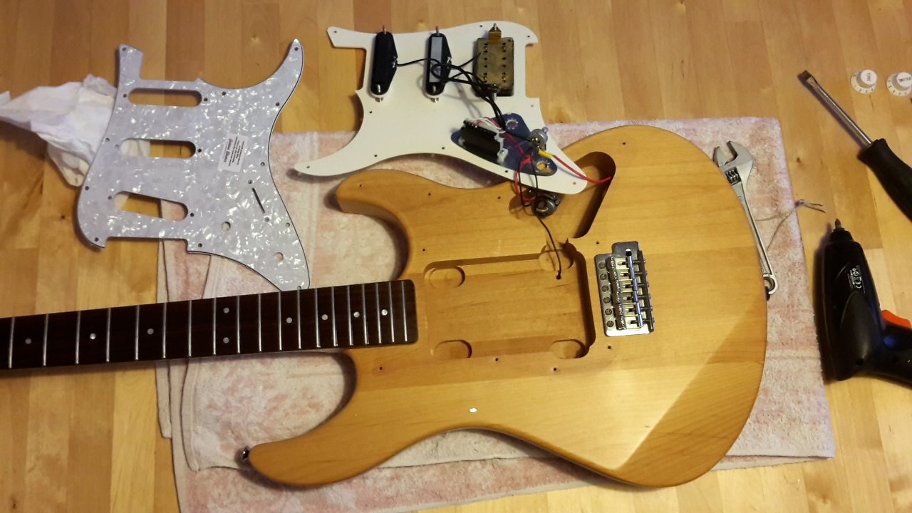 Put it together yesterday and I'm very happy with the visual improvement. The bridge pick-up sounds great and what I was hoping for. The split position combining the bridge and stock middle coil isn't working so happily, more on that later.