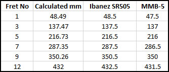 I noticed the fret spacing on my MMB-5 neck was slightly different than another 5 string with the same scale length.