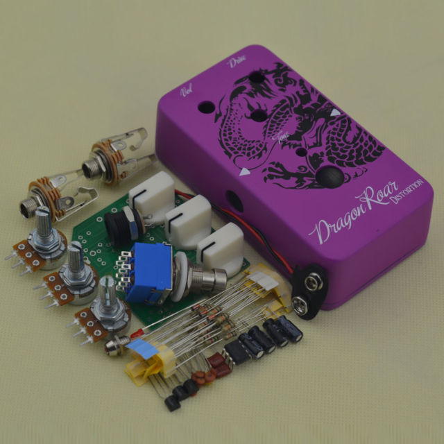 Was browsing around on Ebay and found a Chinese seller who amongst other things sells a number of different guitar pedal kits for just under US$20 each. So I bought a few, namely a distortion kit because it has a cool picture of a Dragon on it, a compressor kit as there are times I just want a compressor of any sort on my guitar, and a two transistor Fuzz kit just for the fun of having an old school Fuzz box between my axe and my amp.