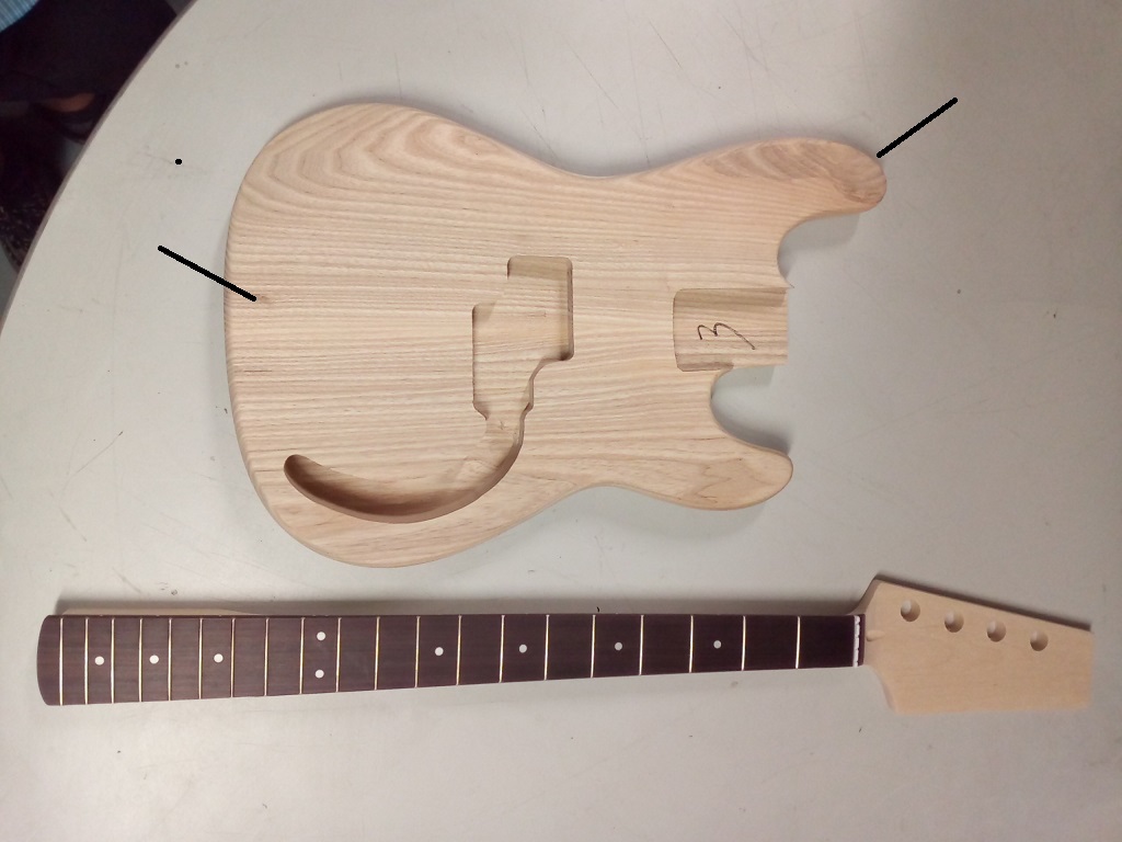 JUst given it an initial sanding down to check out the surface I found one fill in a crack and a nasty little depression at the front bottom edge The neck is good and a pretty tight fit.