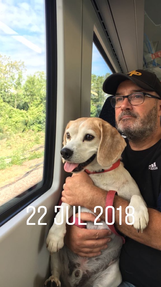 On the train.