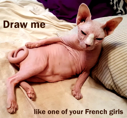 She’s a Sphynx. She has a super light layer of peachfuzz on her but she’s basically nakie. The breed has retarded high metabolism so she’s actually usually quite warm. She feels like a ballsack, straight up.