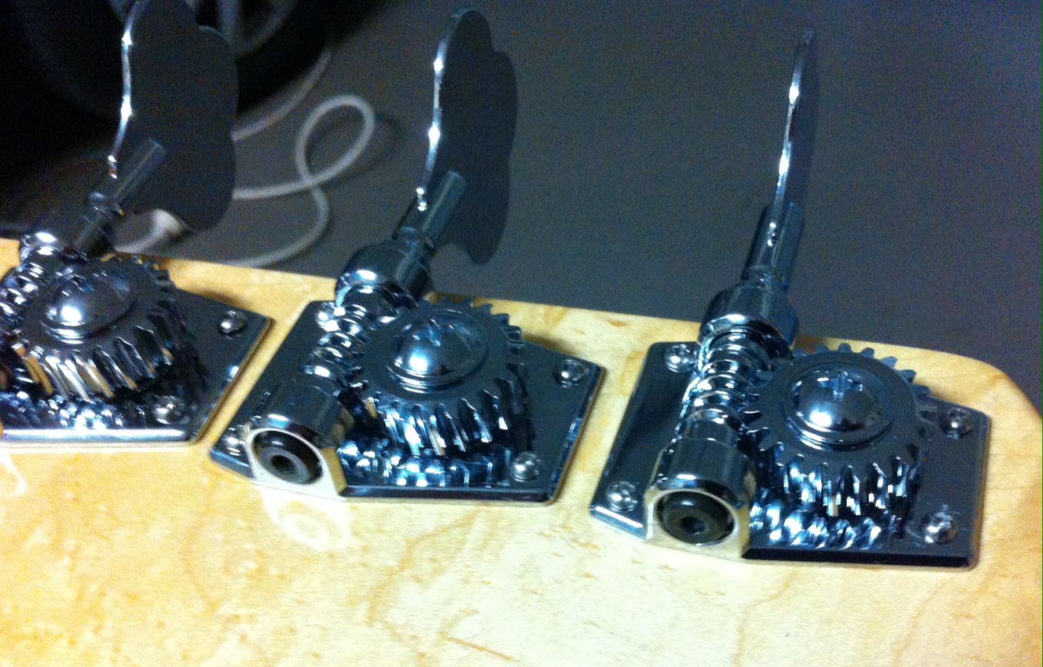 In the second pic you can see the Real Parts tuner on the right which shows a more solid gear and enclosed shaft. 4th shot shots where chrome had started to strip off on one of the standard kit tuners, and 5th pic shows fully sealed Real Parts on the right compared to gear shaft covered by bit of plastic on the left.