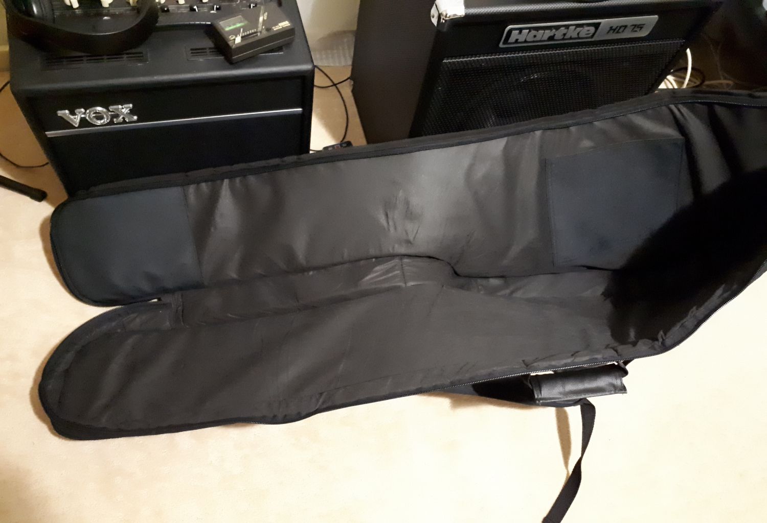 Contemplated building one out of ply wood but as these Basses are heavy enough on their own, the two combined may have become extremely heavy. A custom made aluminium flight case crossed my mind until I found out how much they cost. Even looked at 88 key Keyboard cases too until I struck up a conversation with another forum member based in US who had also built an EX5 and he suggested a gig bag.