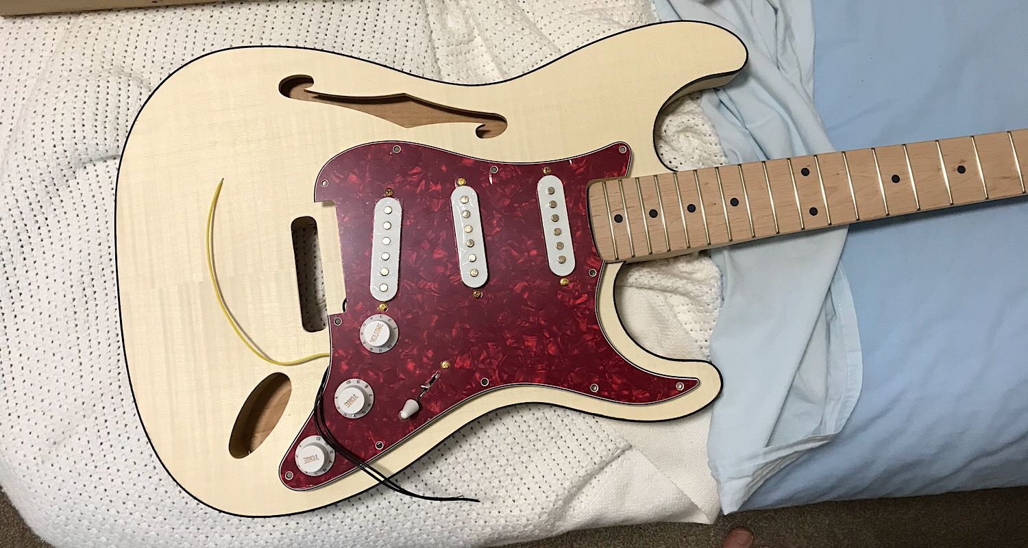 It’s my first maple fingerboard, first Tru oil attempt and first micron thick veneer. I’ll be picking a few brains along the way.