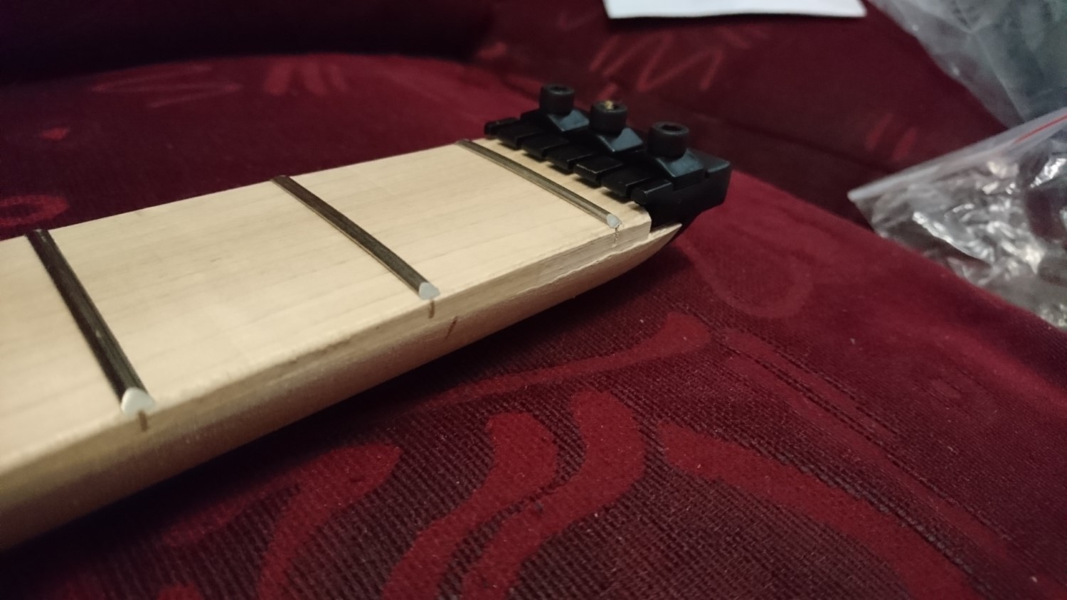 Also on the Treble side of the neck, right near the Zero Fret, the fretboard has been cut in a little bit more than the neck. Not sure what my plan is with that at the moment, I don't think it was particuarly noticable when I held the neck because of how close to the end of the neck it is.