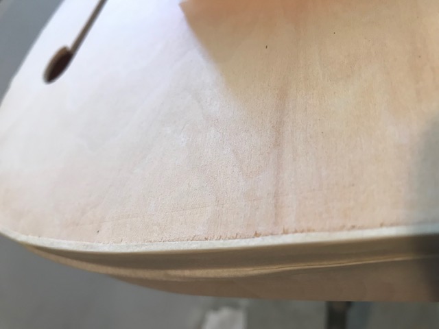 Going to move onto the finish of the body - I have removed a few glue spots using a wire brush, have noticed a few issues with the grain at the bottom near the plastic (which I have taped up). Any suggestions on what to do here? I'm worried sanding this down will go below the plastic binding. I have bought some walnut wood filler - something I am planning on using before I get to Tru Oil. If I use this, will these bits at the bottom be highlighted with the walnut colour or will it fill it in...?
